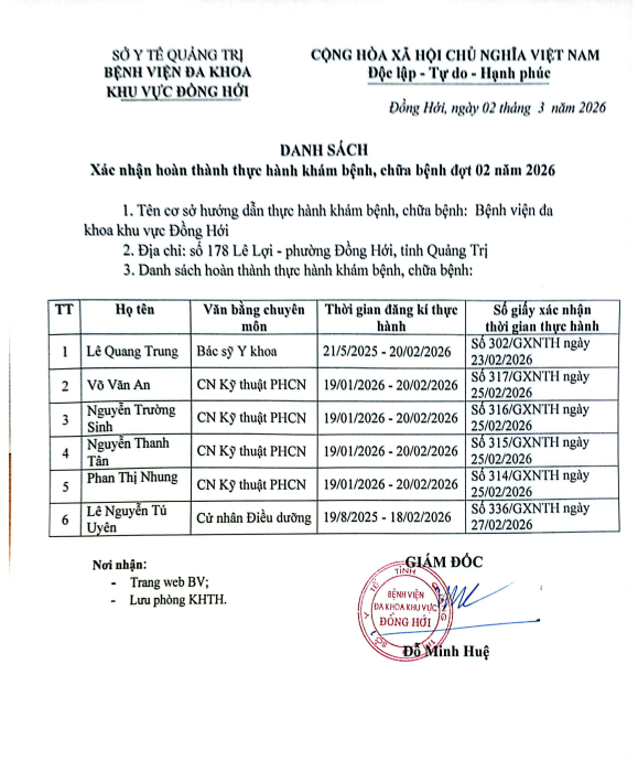 DANH SÁCH NGƯỜI THỰC HÀNH KHÁM BỆNH CHỮA BỆNH ĐỢT 1 NĂM 2026
